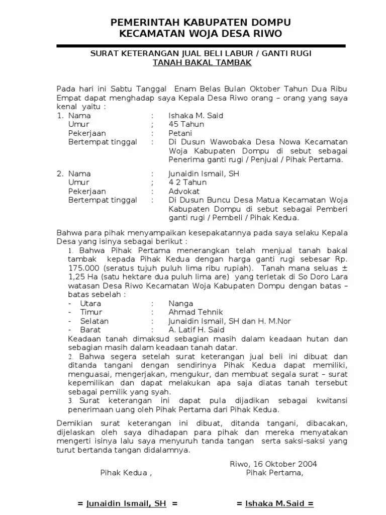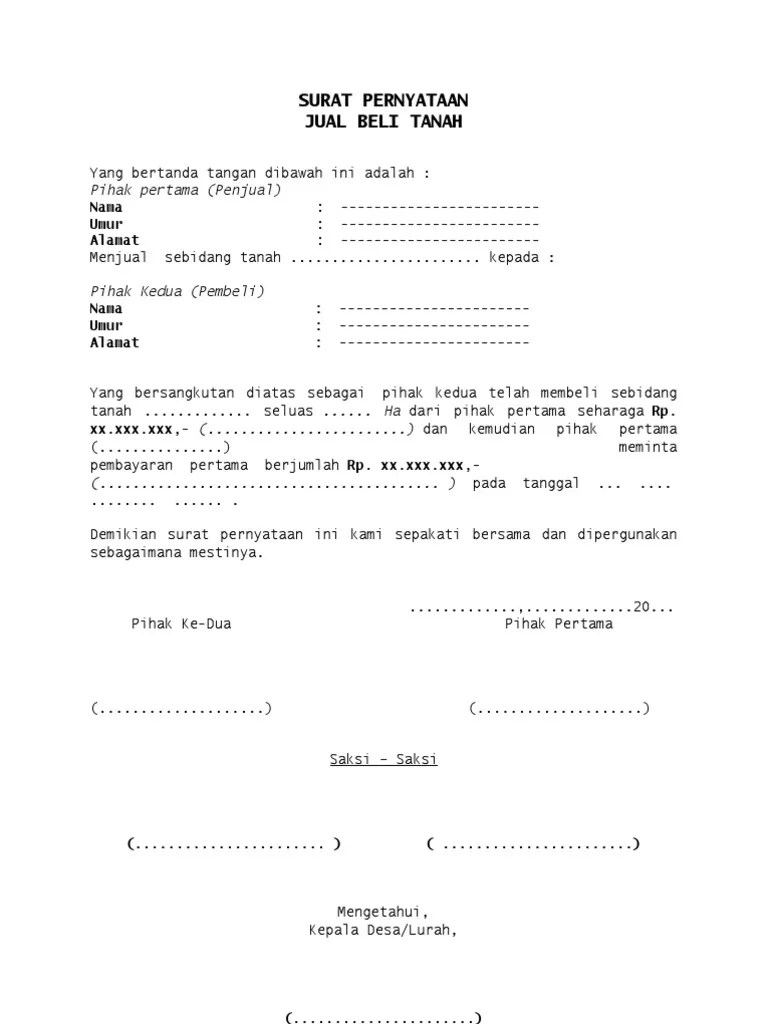 Surat Keterangan Jual Beli Tanah Di Desa - Doc Surat Perjanjian Jual Beli Tanah Kadarisman Andriyono Academia Edu - Berisi contoh surat jual beli tanah, akta atau pernyataan jual beli tanah,.